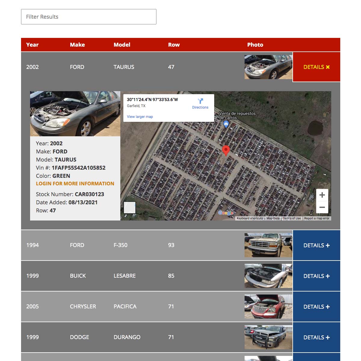 DETAILS: Wrench-A-Part is the home of Texas’ largest selection of used auto parts, with a total of five locations. They offer state-of-the-art, modern self-service auto parts. With over 9,000 salvage vehicles in stock, it’s crucial for Wrench-A-Part to have an organized way to manage them. Our programmers designed a web application that allows users to quickly and easily search Wrench-A-Part’s inventory and find exact GPS Coordinates of each vehicle on the property. Wrench-A-Part is also able to add photos of vehicles and when they update information in our system, it automatically updates both their yard management system and the third party “Row52” application. In addition to the convenient search ability, we also programmed it in a way that allows site visitors to sign up for notifications (text/email) when the car they are looking for is in stock.