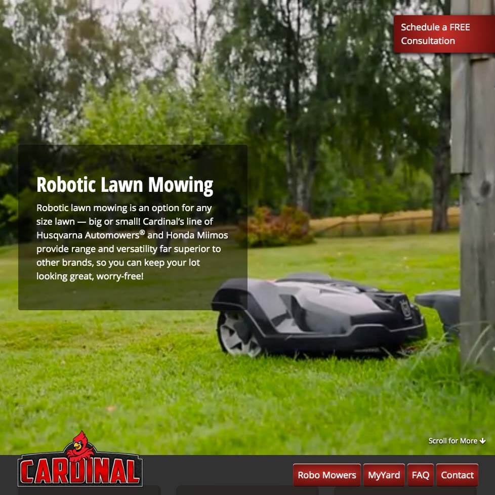 DETAILS: Cardinal Rental & Sales wanted a website to specifically showcase their line of robotic lawnmowers. The site focuses on imagery of the mowers in action along with helpful information for customers—while looking great on any device.