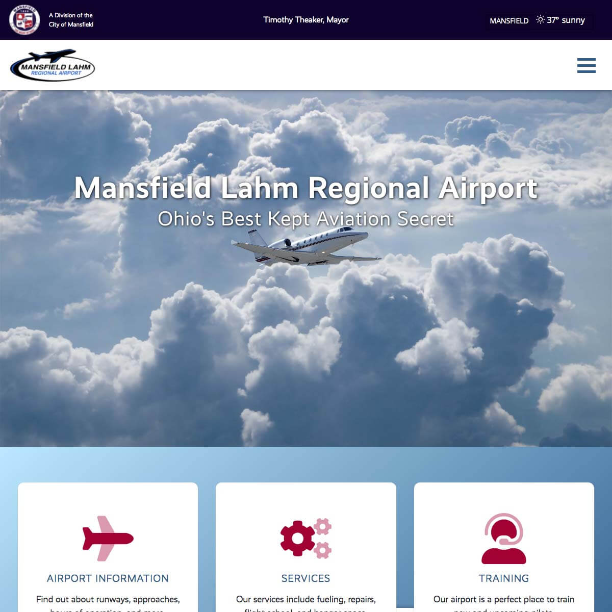 DETAILS: Considered to many in the area as “Ohio’s best kept aviation secret,” the Mansfield Lahm Airport is rich in history related to the beginnings of aviation. In fact, Frank Lahm (born in Mansfield, Ohio) was trained to fly by Wilbur Wright himself. Following a lesson that lasted a little more than three hours, Lahm became the second person ever to earn an Aero Club of America Pilot’s license. With the rich history of the Mansfield Lahm Airport in mind, this website includes many unique features that also made it very enjoyable to design. With slider customizations such as a plane taking off and parallax pictures, the website flows beautifully to tell the story of the Lahm Airport.
