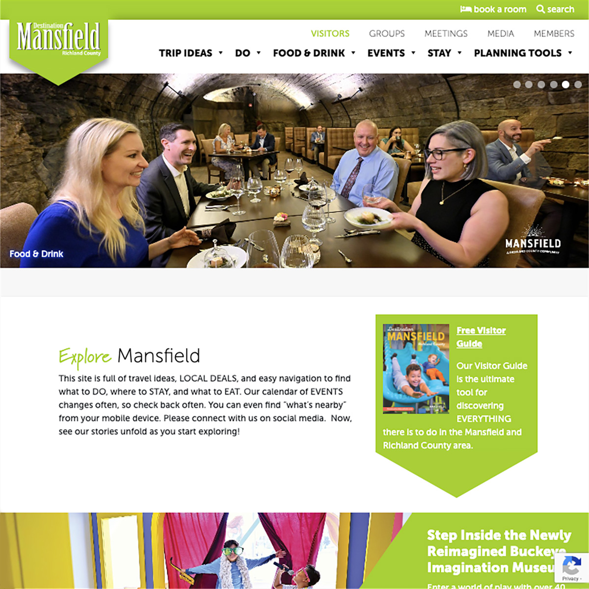 DETAILS: Destination Mansfield, the Convention and Visitor Bureau for Mansfield and Richland County, Ohio, needed a website with an updated look and improved usability to showcase the many local attractions and events the area has to offer. The mobile-responsive, highly photographic site allows visitors to plan their trips from home and also be able to see what else there is to do in the area once they arrive. There were several years’ worth of blog posts and other data that needed to be included from their previous site, and DRM wrote some custom programming to get that information integrated with the new site.