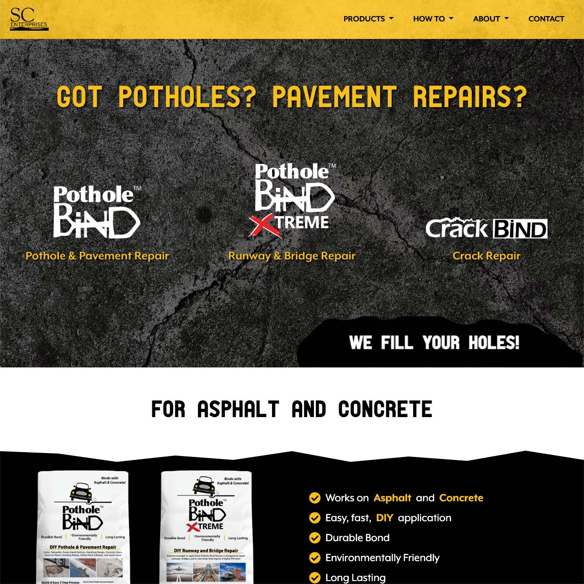 DETAILS: Pothole Bind wanted a new website that would showcase their DIY pavement repair products. DRM was able to take their vision and make it a reality using bold colors and textures throughout the site.