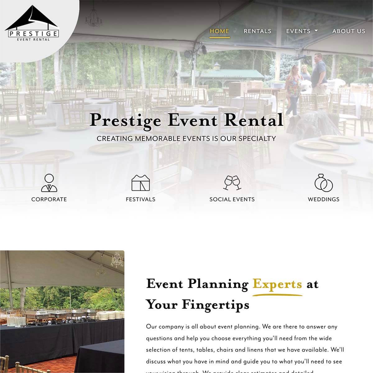 DETAILS: Prestige Event Rental is a full-service rental company based in Mansfield, Ohio, serving communities in and around the Columbus area. They wanted a new website that was fresh and elegant with a focus on their services. DRM achieved this by using a minimal color scheme and plenty of white space, which helps users focus on the content without getting lost in the details.